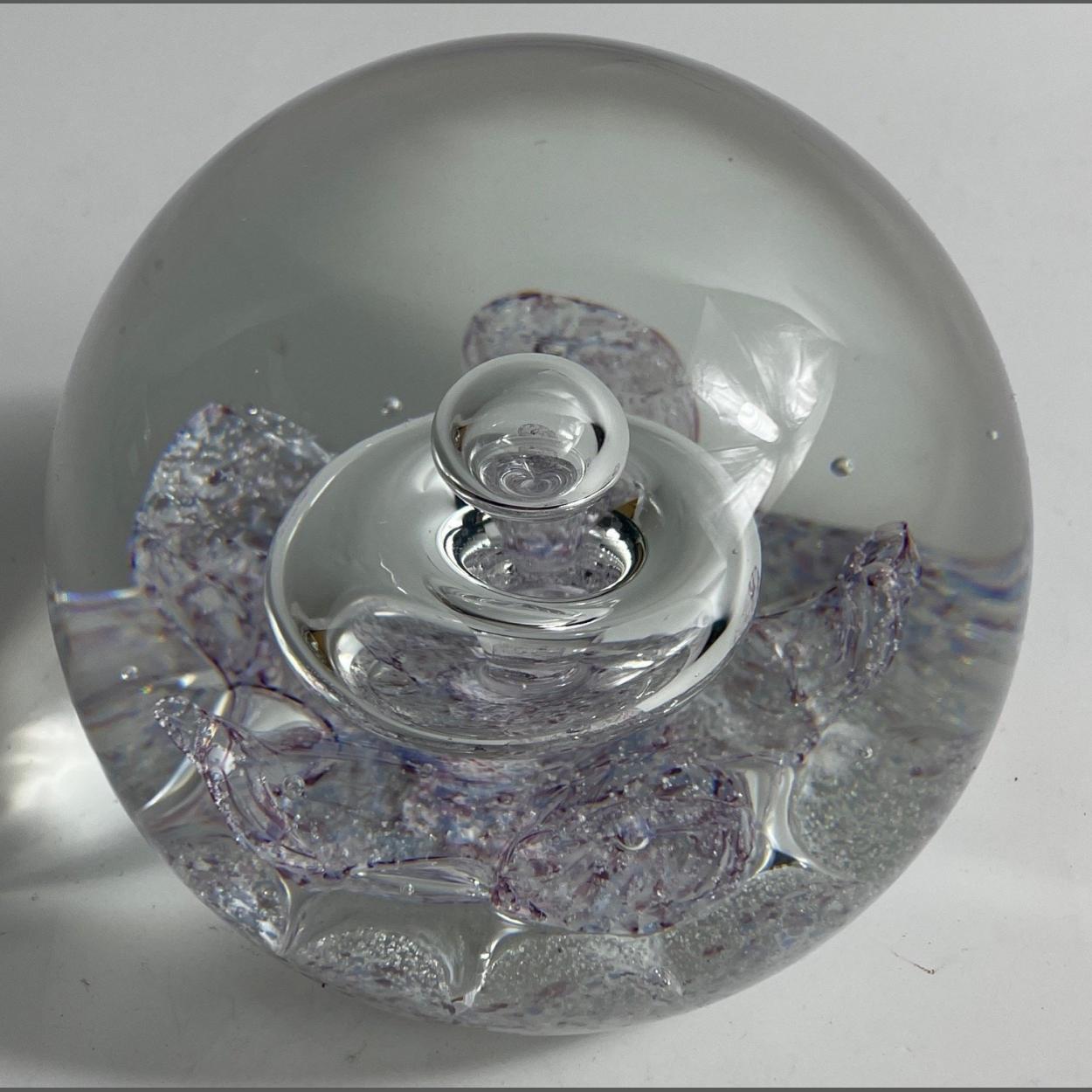 A SELKIRK GLASS paper weight with original stickers and signed to the base 7cm high