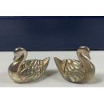 Four white metal NAPKIN RINGS boxed with 6 duck-shaped name card holders all within a presentation box