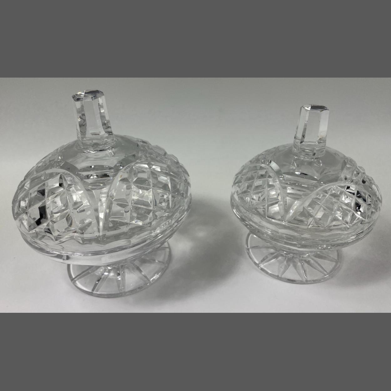 Two matching crystal BONBON dishes approx 13 and 15cm high (small chip in lip of smaller dish but does not detract)