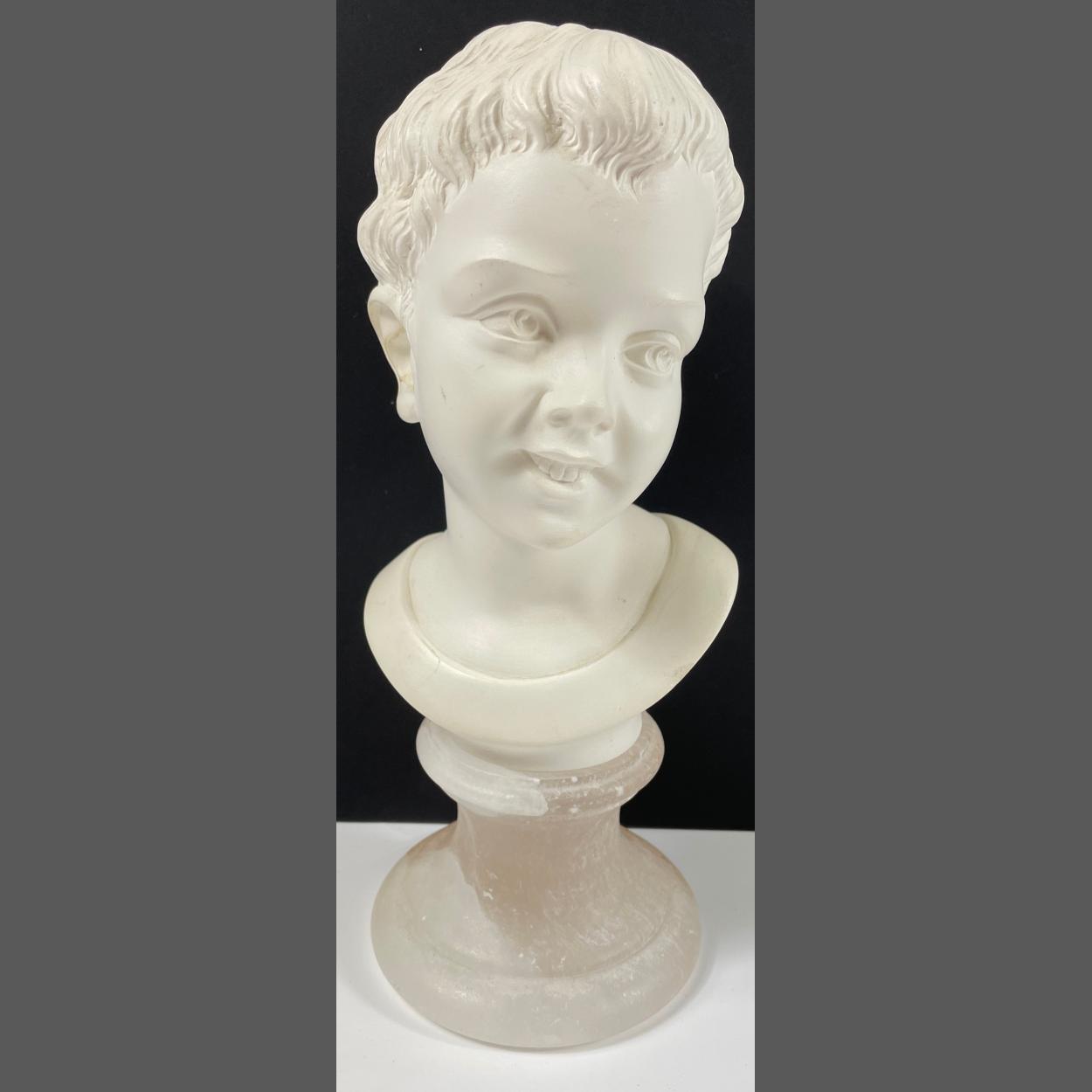 An alabaster bust with marble base of a young boy, inspired by GIUSEPPE BESSI, stands approx 25cm high