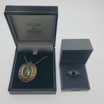 A lady's dress ring hallmarked Birmingham silver with 12 clear stones and 1 blue stone size Q, gross weight 3g, plus a BROOKS & BENTLEY 925 silver CAT PENDANT chain 40cm, pendant 4cm gross weight 14.2g