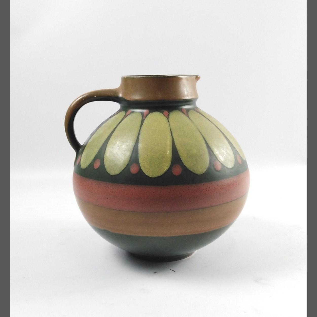 A RETRO KMK WEST GERMAN made colourful decorated pottery vase dimensions 23cm height x 23cm diameter at the greatest point - a nice example!