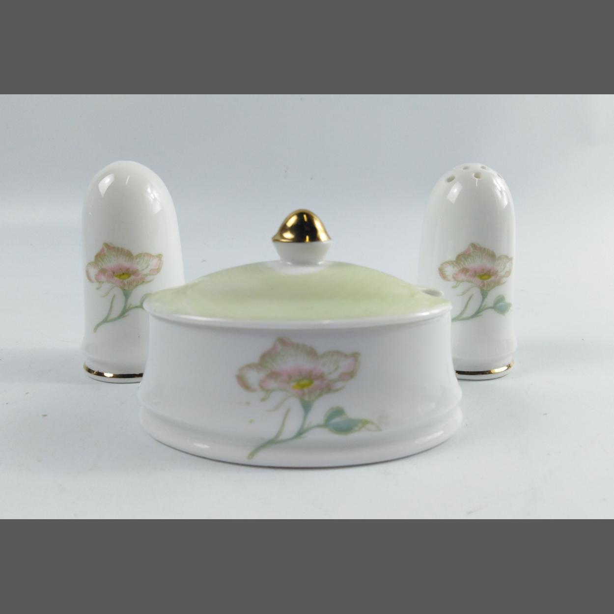 Vintage SUSIE COOPER 'Wild Rose' cruet set of salt, pepper and mustard dish (8cm)