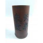 Two CHINESE vintage paint brush pots both depicting a Chinese elder 14cm height x 6.5cm diameter