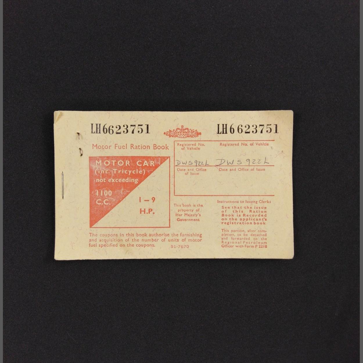 A vintage MOTOR FUEL RATION BOOK No LH6 623751 and intact