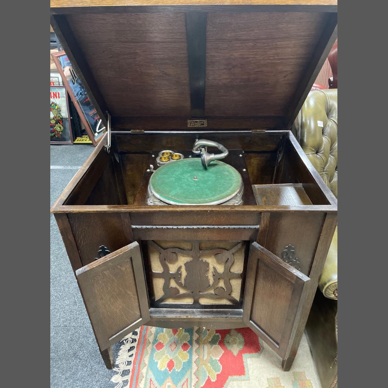 A VINTAGE UNITONE gramophone circa late 1930's within its original oak case with a selection of 78's HMV Columbia labels mainly with Scottish Country Music etc etc