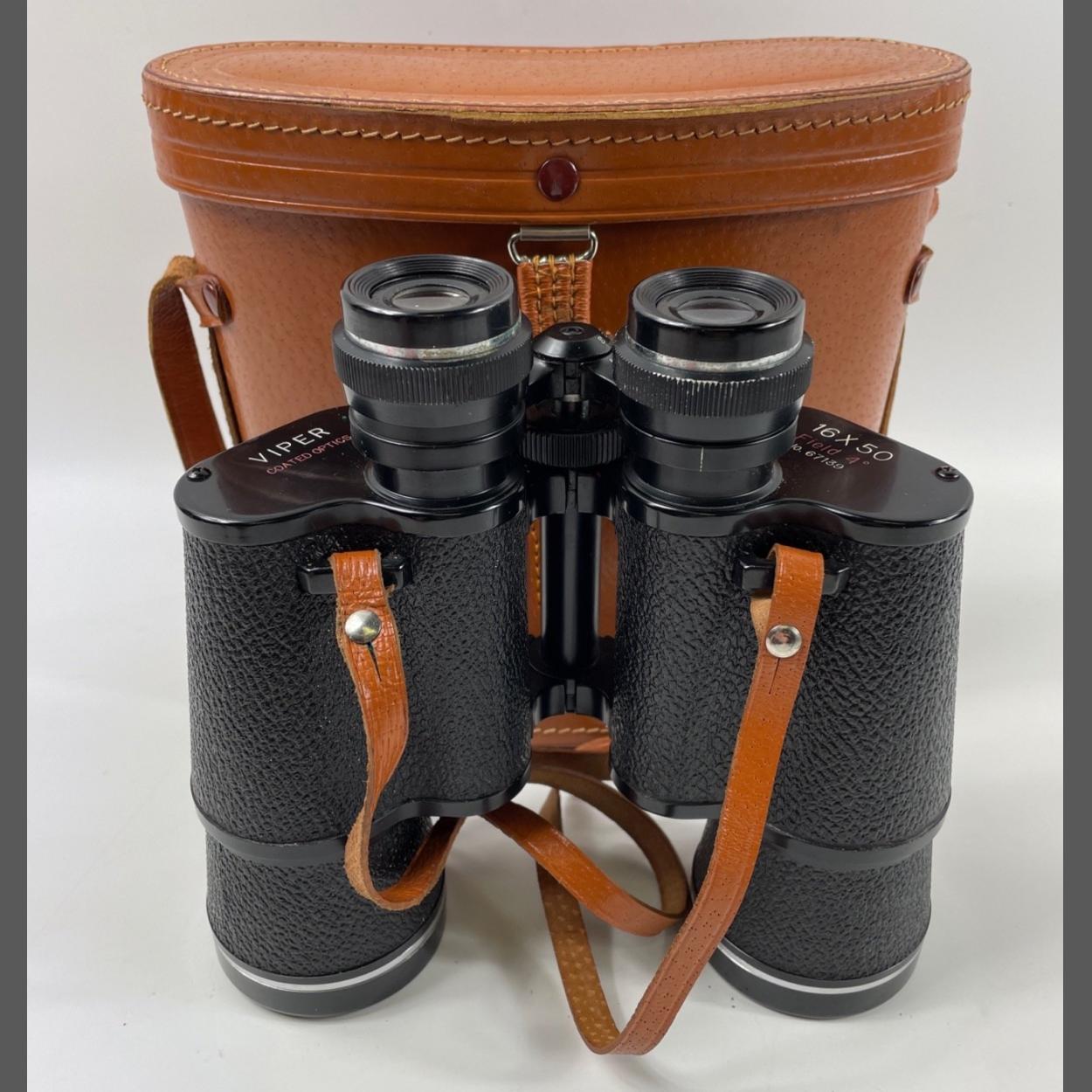 A pair of JAPANESE VIPER Field 4 made binoculars with coated optics No 67139 16 x 50 in original brown leather case and lense/optic covers