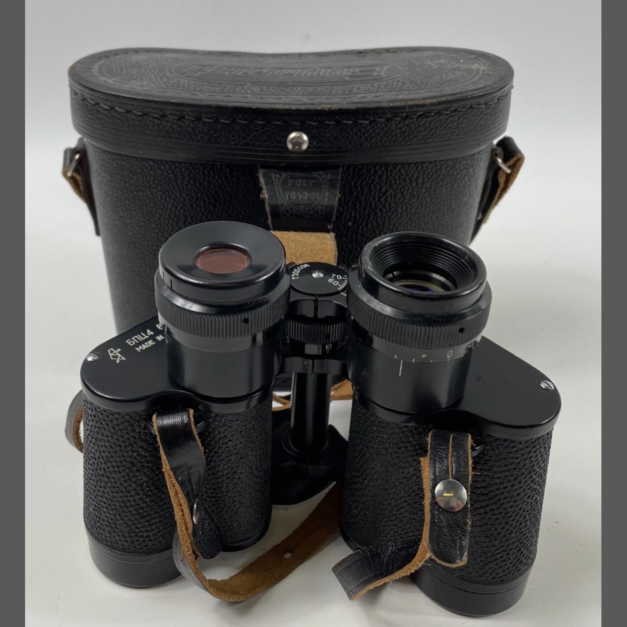 NICE QUALITY! MADE IN USSR 8 x 30 vintage binoculars with unusual amber coloured lens/optics covers with original black case in quality red lining