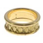 SUBSTANTIAL 750 stamped yellow gold graduated WEDDING BAND with shell effect pattern, ring size Q, weight 14.50g