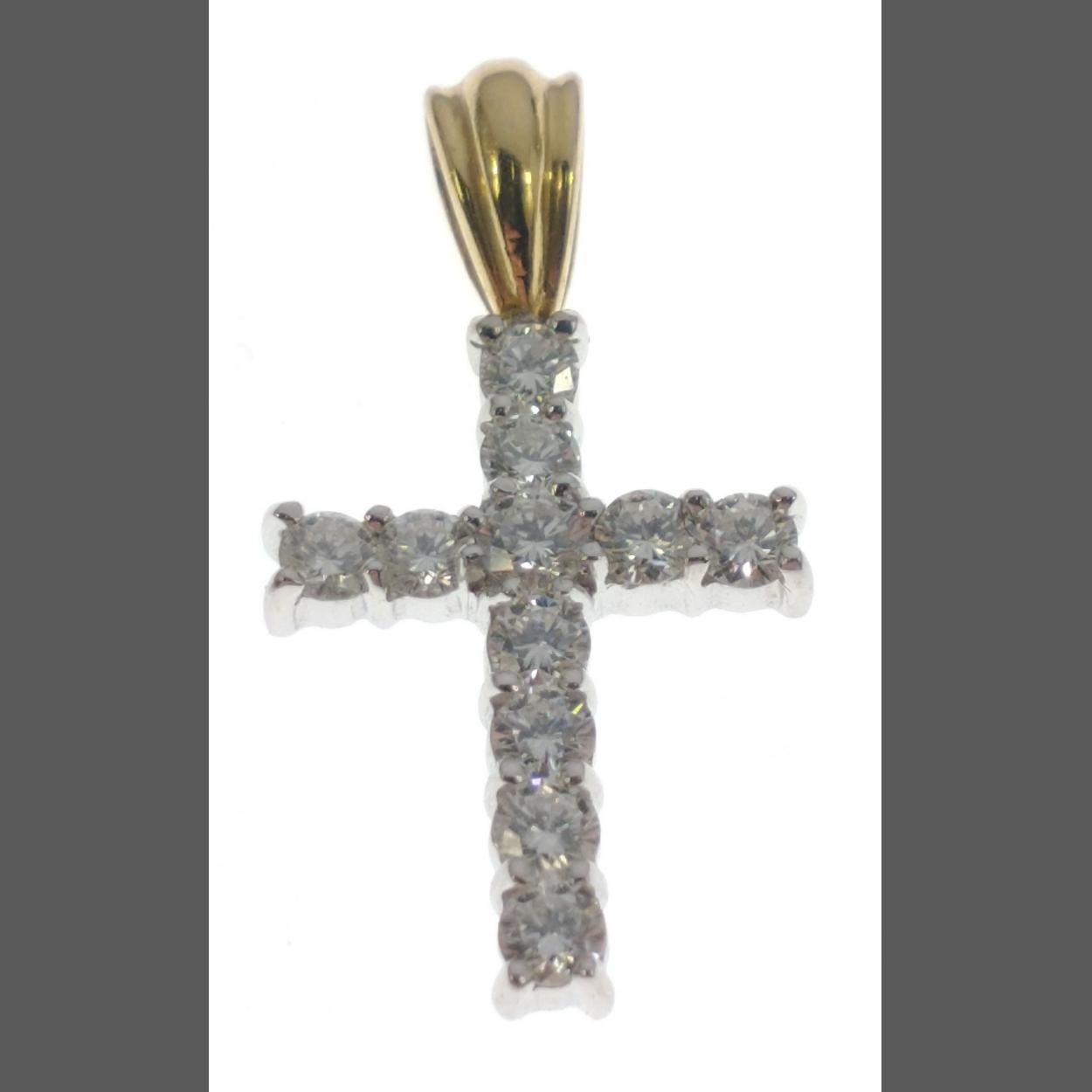 PRETTY! 750 stamped yellow gold diamond (11 diamonds tested) set cross PENDANT, dimensions 2cm x 1.5cm, gross weight 1.70g