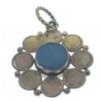 VINTAGE 'yellow metal' mourning PENDANT set with 8 garnets surrounding woven hair, dimension 2cm diameter, gross weight 4g
