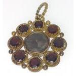 VINTAGE 'yellow metal' mourning PENDANT set with 8 garnets surrounding woven hair, dimension 2cm diameter, gross weight 4g