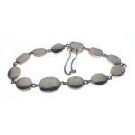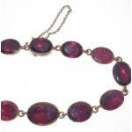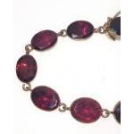 VINTAGE 'yellow metal' BRACELET set with individual 12 graduated garnets, dimension 17cm long, complete with safety chain, gross weight 10g
