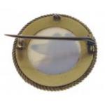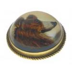 ANTIQUE ESSEX CRYSTAL 'yellow metal' set circular BROOCH depicting an English rough Collie, 2.50cm diameter, gross weight 7.5g approx -