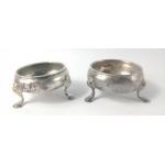 Two early 18th century SALTS, one London hallmarked 1758 the other 1790, by silversmith DAVID HENNELL, 6cm diameter x 3.5cm in height, gross weight of 88g