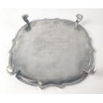 A London silver hallmarked 1932 small presentation TRAY to Dr John Cottrell, from DUNLOP Ltd Oil & Marine Division, dimension 15cm diameter and weight 240g approx
