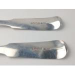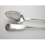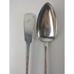 A pair of Scottish EDINBURGH silver hallmarked 1807 BASTING SPOONS, by silversmith WILLIAM CONSTABLE, dimensions 30cm long approx, weight 200g combined.