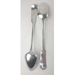 A pair of Scottish EDINBURGH silver hallmarked 1807 BASTING SPOONS, by silversmith WILLIAM CONSTABLE, dimensions 30cm long approx, weight 200g combined.
