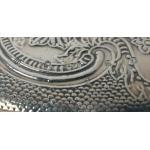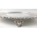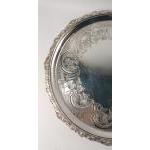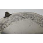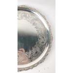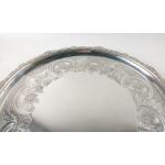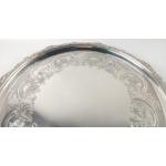 Large silver EDINBURGH hallmarked 1818 TRAY with floral decoration and scalloped edging, by silversmith JW HOWDEN & CO 35.5cm diameter, 1210g weight
