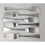 Four London silver hallmarked 1805 FORKS by silversmith RC plus 2 London silver hallmarked 1807 FORKS by silvermsith RR length 20cm, gross weight 376g.