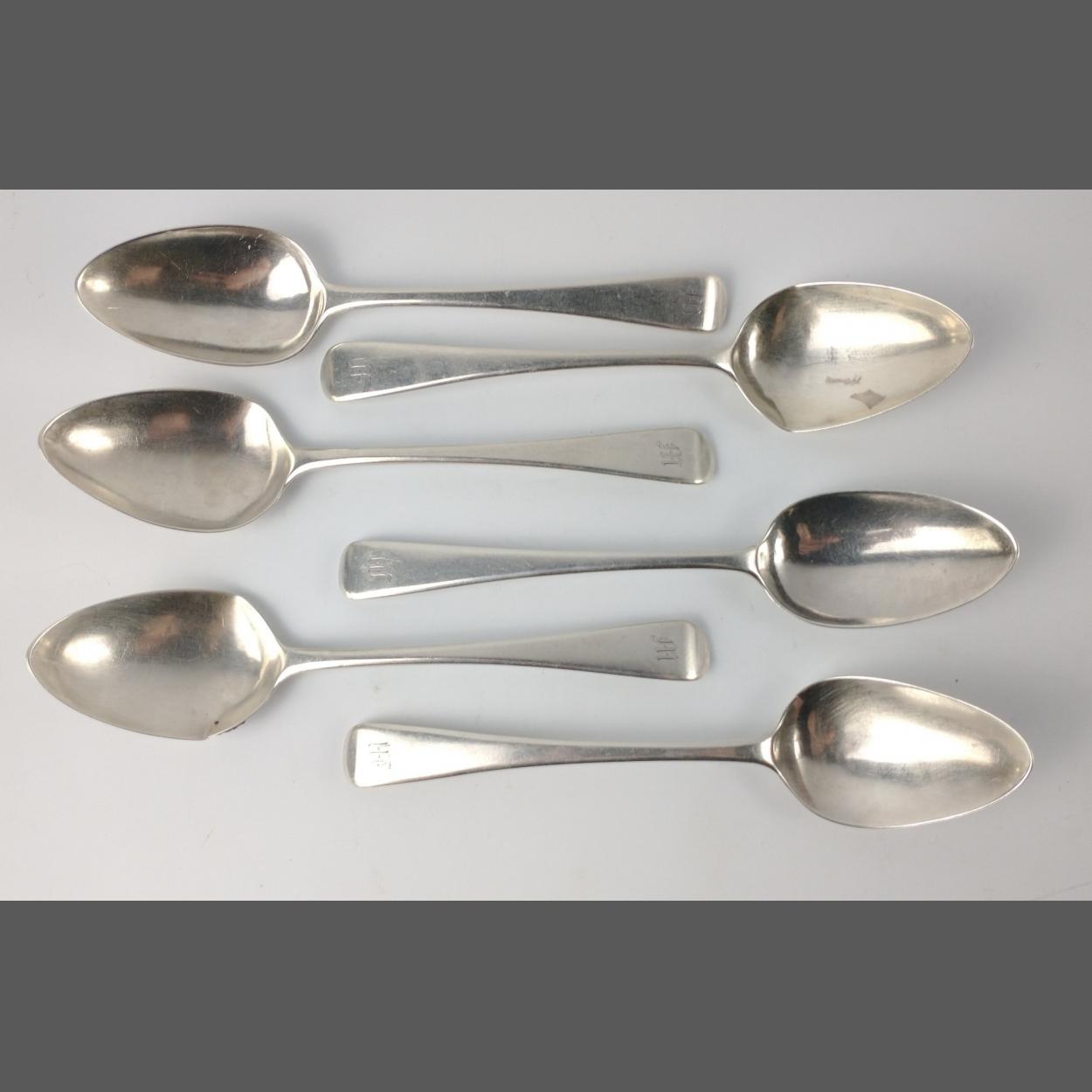 Six London silver hallmarked 1802 SPOONS by silversmiths CHRISTOPHER & THOMAS WILKES-BARKER, length 17cm, gross weight 200g.