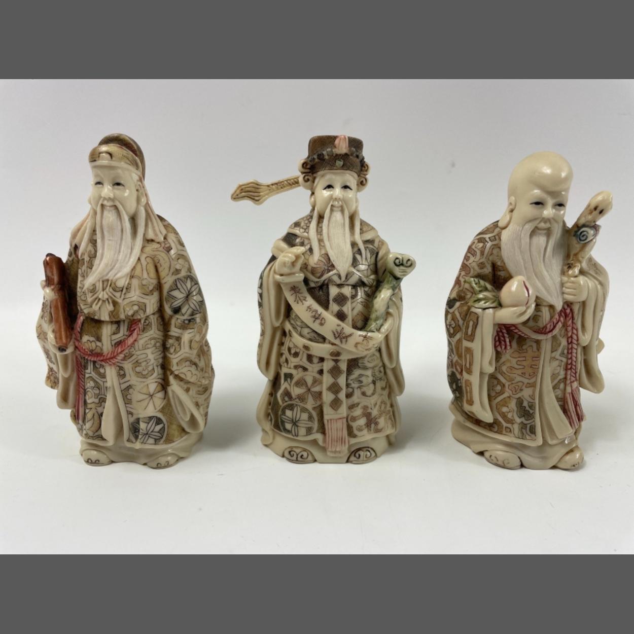 A set of three carved ORIENTAL WISE MEN standing approx 10cm high
