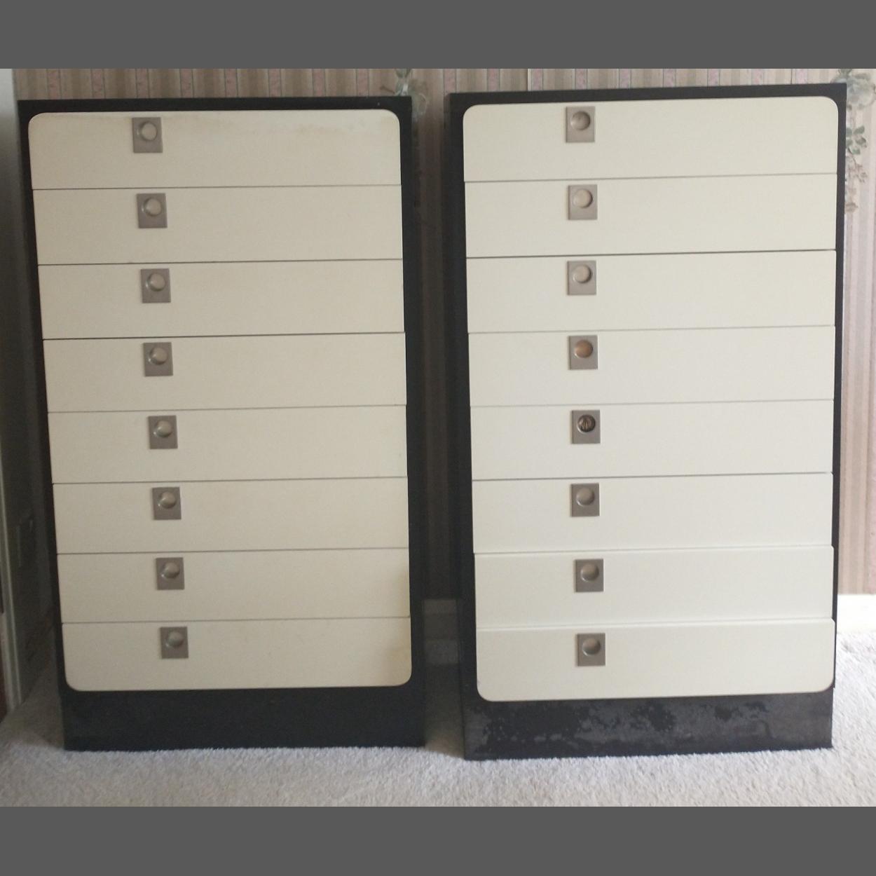 Pair of retro black and white chest of 8 drawers. Some wear to top of one and bottom of other(matcing previous lot probably Schreiber?)