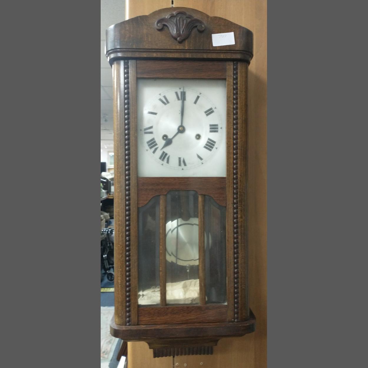 Wooden wall clock with triple pane glass front beaded edge and brushed steel face
