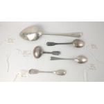 An assortment five London hallmarked SILVER PIECES to include 1806 tablespoon, 1819 mustard spoon, 2 teaspoons and a small ladle gross weight 115g.