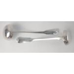 Two EDINBURGH silver hallmarked SAUCE LADLES 1810/1826, one by silver smith JAMES McKAY (16cm length gross weight 24g), and one by silversmiths MARSHALL & SONS 15cm length and gross weight 28g.