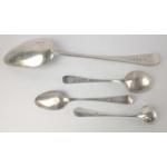 Four assorted London hallmarked silver SPOONS to include 2 by silversmiths PETER & WILLIAM BATEMAN 1806/1808, 1 by silversmiths PETER & ANN BATEMAN 1799, 1 by silversmiths PETER, ANN and WILLIAM BATEMAN 1802, gross weight 84g.