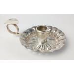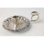 An EDINBURGH silver hallmarked 1996 Wee Willie Winkie CANDLE HOLDER by silversmith ALAN R BAILLIE, 7.5cm diameter base, total length 11cm, and a Birmingham hallmarked 1991 CANDLE SNUFFER length 16.5cm by 4cm snuffer, gross weight 73g.
