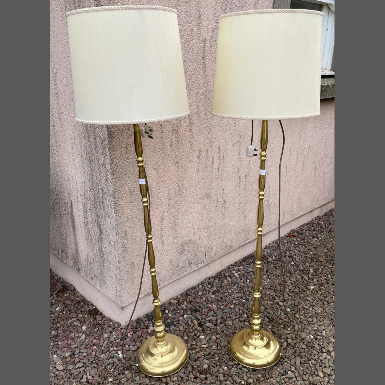 A pair of SUBSTANTIAL brass FLOOR LAMPS with shades