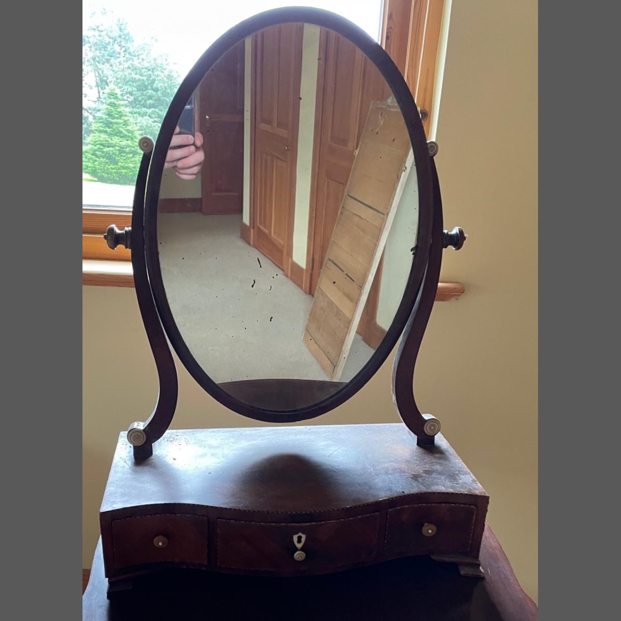 A small EDWARDIAN string inlay dressing table top MIRROR dimensions 43cm length x height 57cm high x 20cm depth