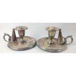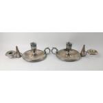 A pair of Sheffield WALKER & HALL Wee Willie Winkie CANDLE HOLDERS with candle SNUFFERS 14.5cm diameter by 8cm high, gross weight 759g