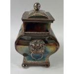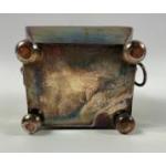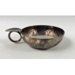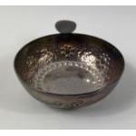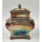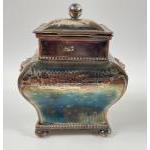 A white metal TEA CADDY 12cm x 10cm x 7.5cm plus a Sheffield WINE SOMMELIER'S CUP 8.5cm diameter, gross weight 430g.