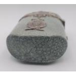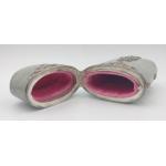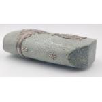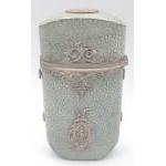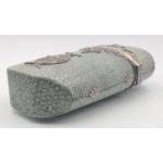 A lovely19th century shagreen EYE-GLASS case with white metal decoration, 10cm long with pink velvet lining