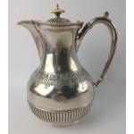 1892 West Linton prize lidded (3527) WB&Co EP WATER JUG with bone finial dimensions 11.5cm high x 18cm wide, weight 805g
