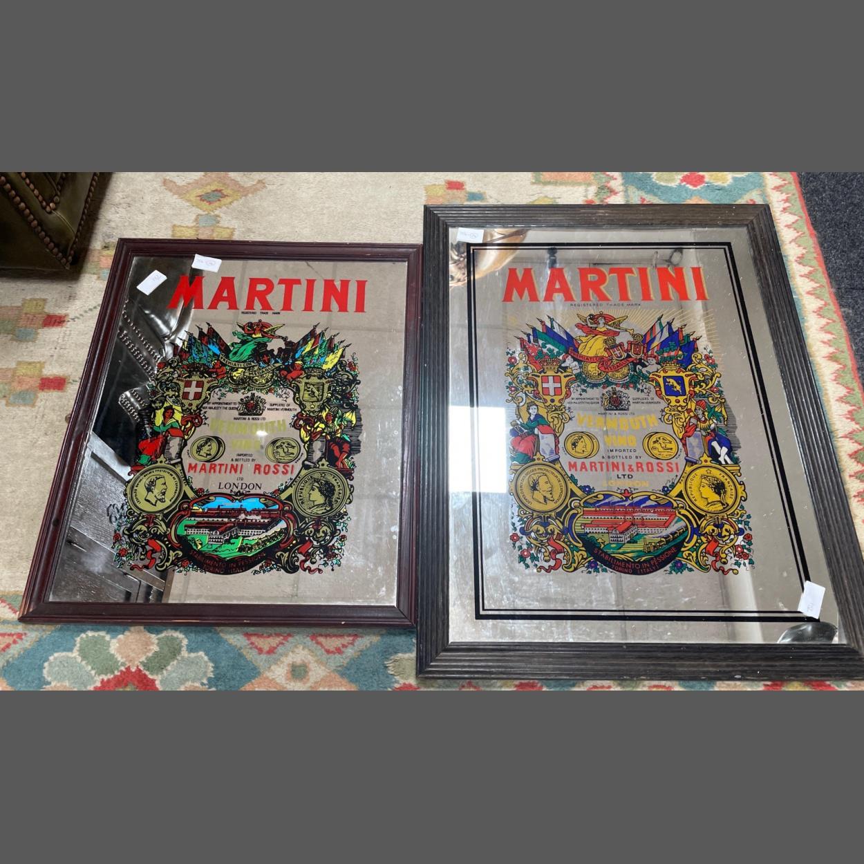 Two vintage MARTINI pub mirrors one 55 x 45cm approx, the other 68 x 52cm