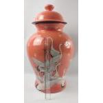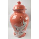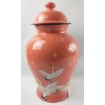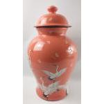 A super large GINGER JAR in a coral colour with design of cranes standing an impressive 50cm high