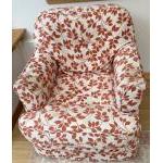A CHARMING & COMFY two seater sofa and armchair in cream and amber coloured floral/leafy style pattern - ideal for a conservatory or lounge