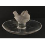 A LALIQUE ring tray with a charming Wren centre bird 10cm diameter, 5cm height, a few scratches to the base but otherwise good condition