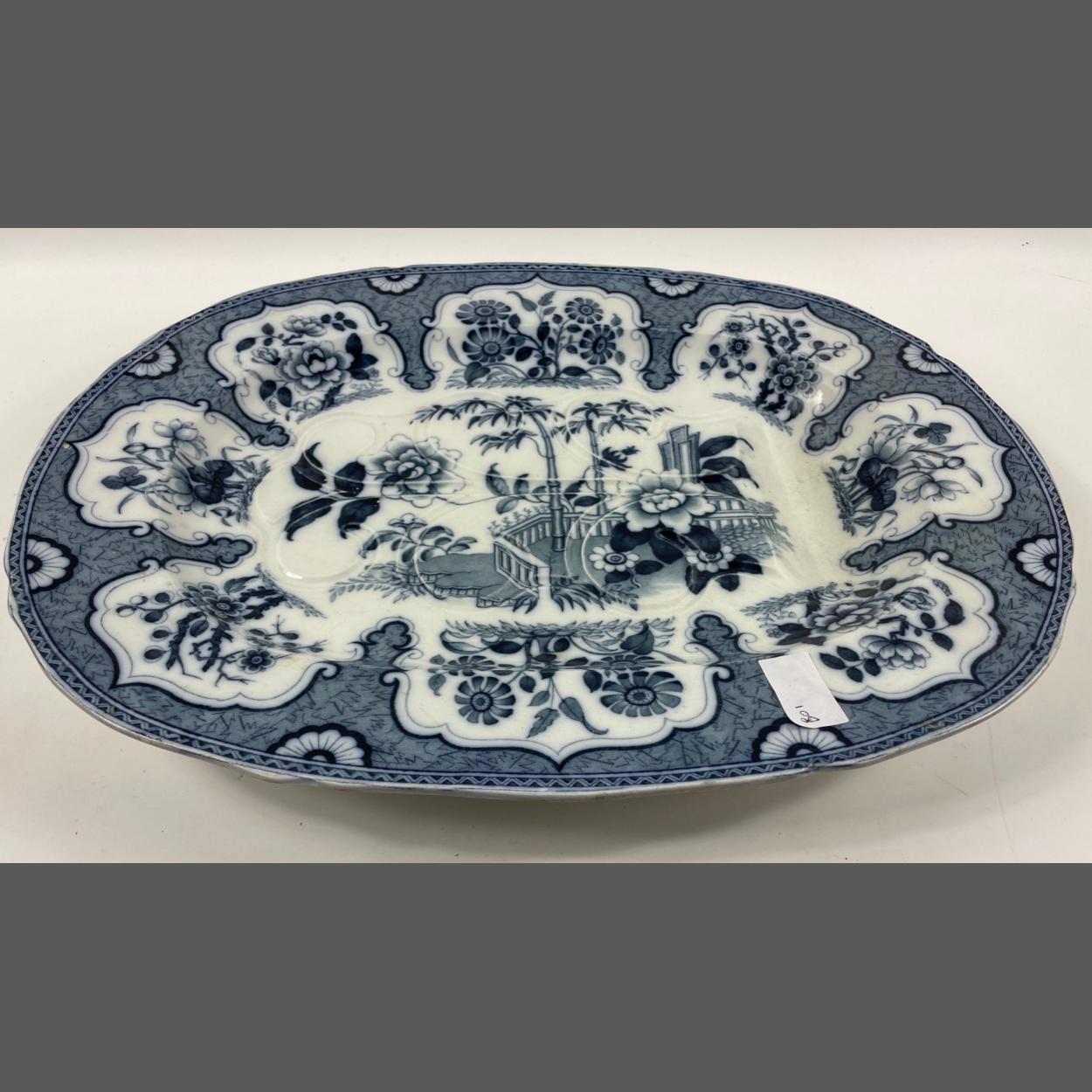 Fabulous MINTON MOOLTAN CHARGER with bamboo pattern with the backstamp: Mooltan BB New Stone and date cypher for 185. Small chip from one of base supports but otherwise excellent condition 49cm x 39cm