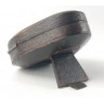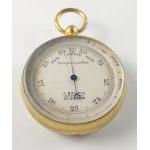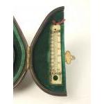 A vintage brown, leather TRIPTYCH with green velvet lining with a pocket BAROMETER (4cm diameter) by J Brown, optician of Glasgow, a thermometer (minus glass tube) and space for a thermometer, outer case measures 9 x 7.5cm