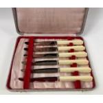 A set of six boxed BUTTER KNIVES with bone handles by JOSEPH ELLIOT & SONS of Sheffield, length 16.5cm