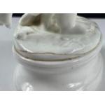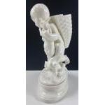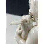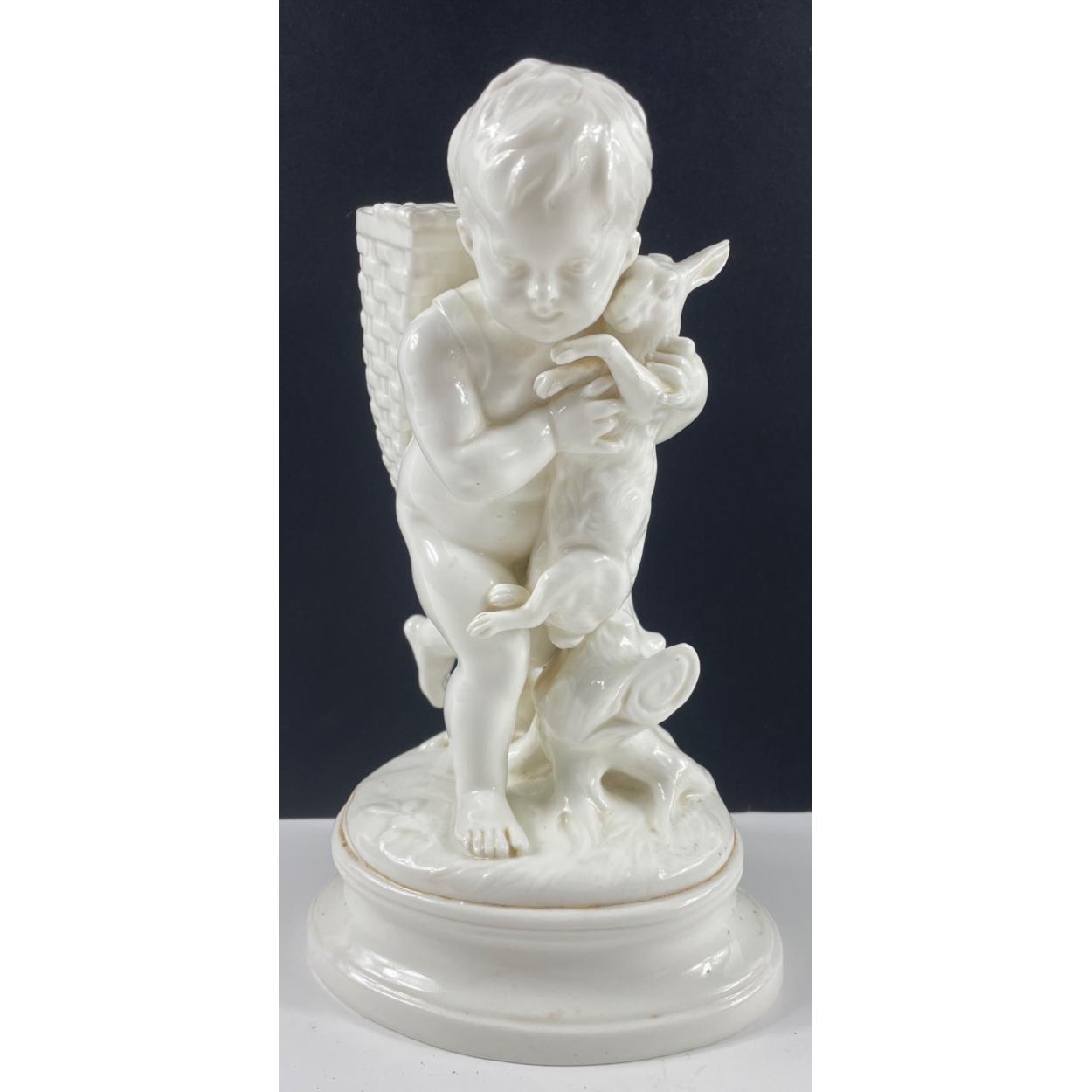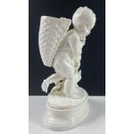 A decorative piece from BROWNFIELD of a boy holding a hare (one ear broken) and carrying a basket/vase on his back. The registration mark to the base of the item dates it to Sept 30th 1874, stands 23cm high