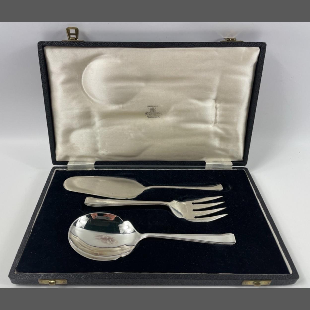 A vintage silver plate MACKAY & CHISHOLM dessert SERVING SET in original presentation case