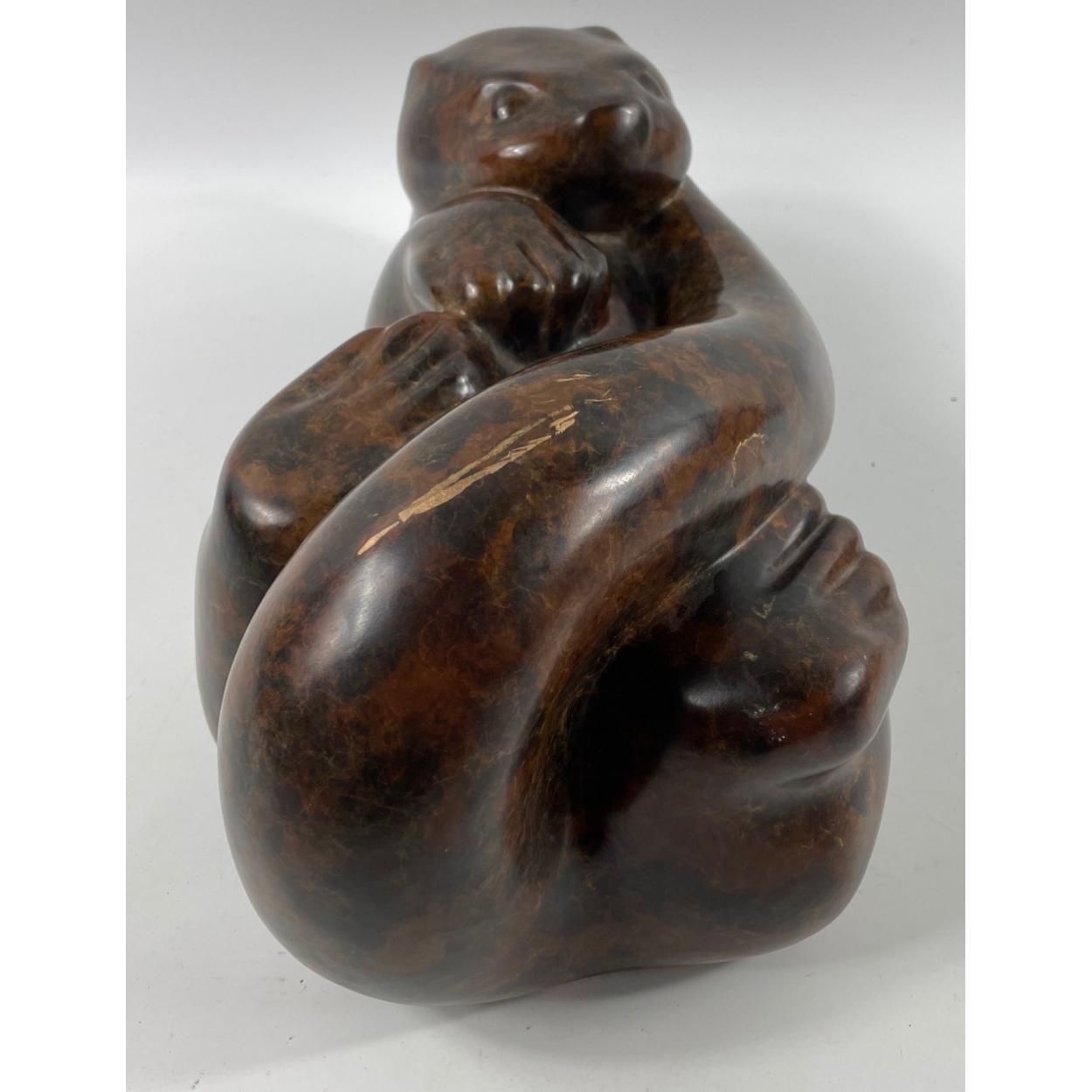 A SUBSTANTIAL AND AN ORIGINAL LAURENCE BRODERICK SCULPTURE 'Little Otter lll 1/7 bronze statue otter in wildlife lying on it's back dimensions 37cm length x 20cm breadth x 17cm height approx