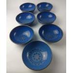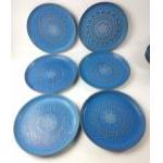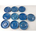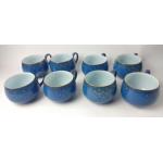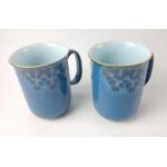 A part DENBY MIDNIGHT dinner service to include 7 x 25.5cm plates, 4 x 17cm plates, 10 x 15cm saucers, 7 x 17cm bowls, 8 cups, 2 mugs, 1 jug 13.5cm tall, 1 jug 7cm high, 1 sugar bowl, 1 scallop-edged flan dish 21cm dia, 1 straight-sided dish 18cm dia, 1 lidded serving dish 13cm at rim