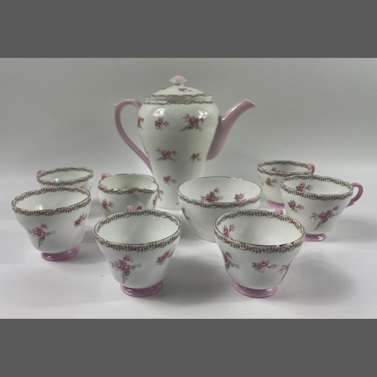 A SHELLEY part coffee service to include 6 cups, 1 coffee pot plus sugar bowl and milk jug